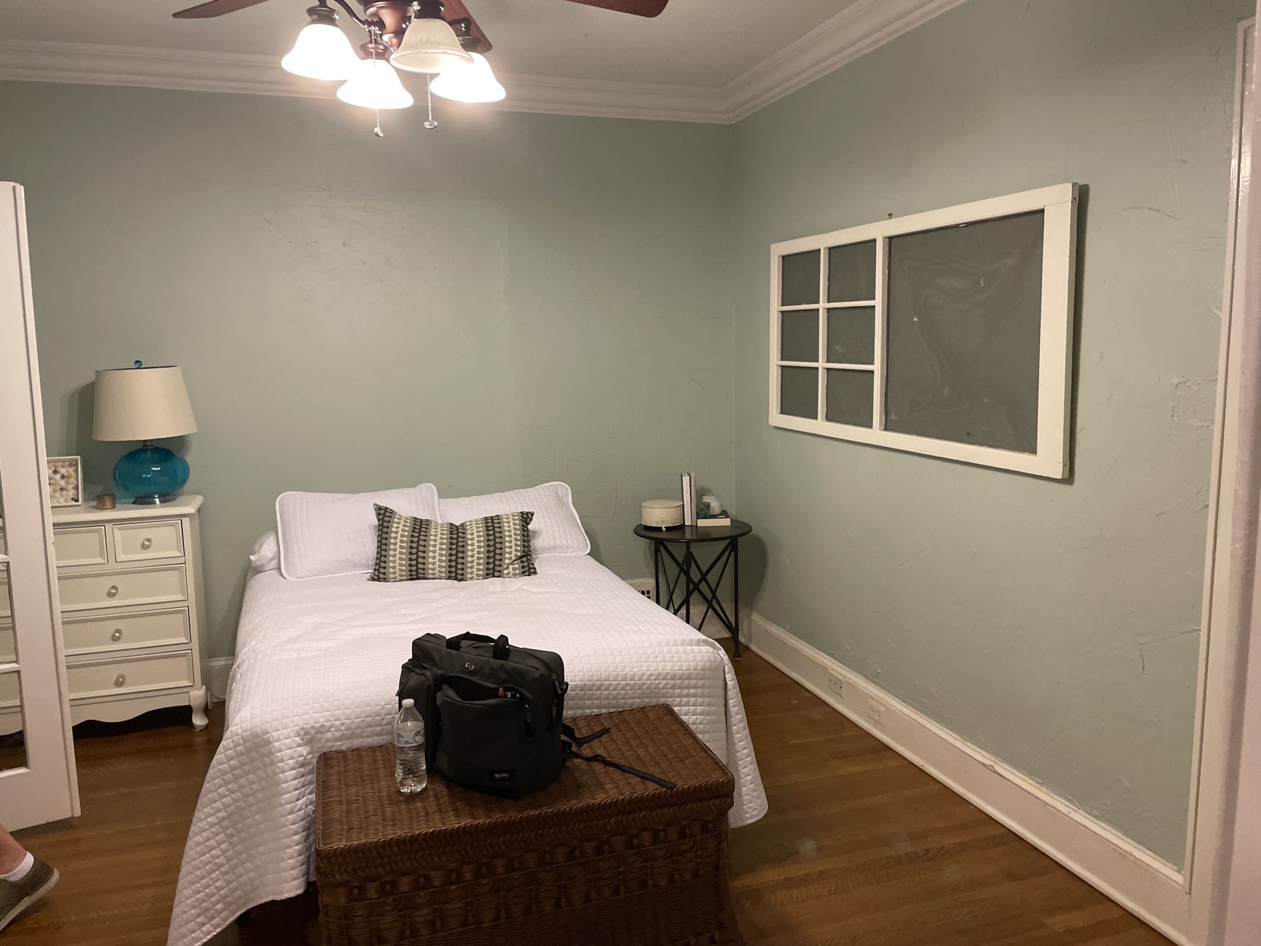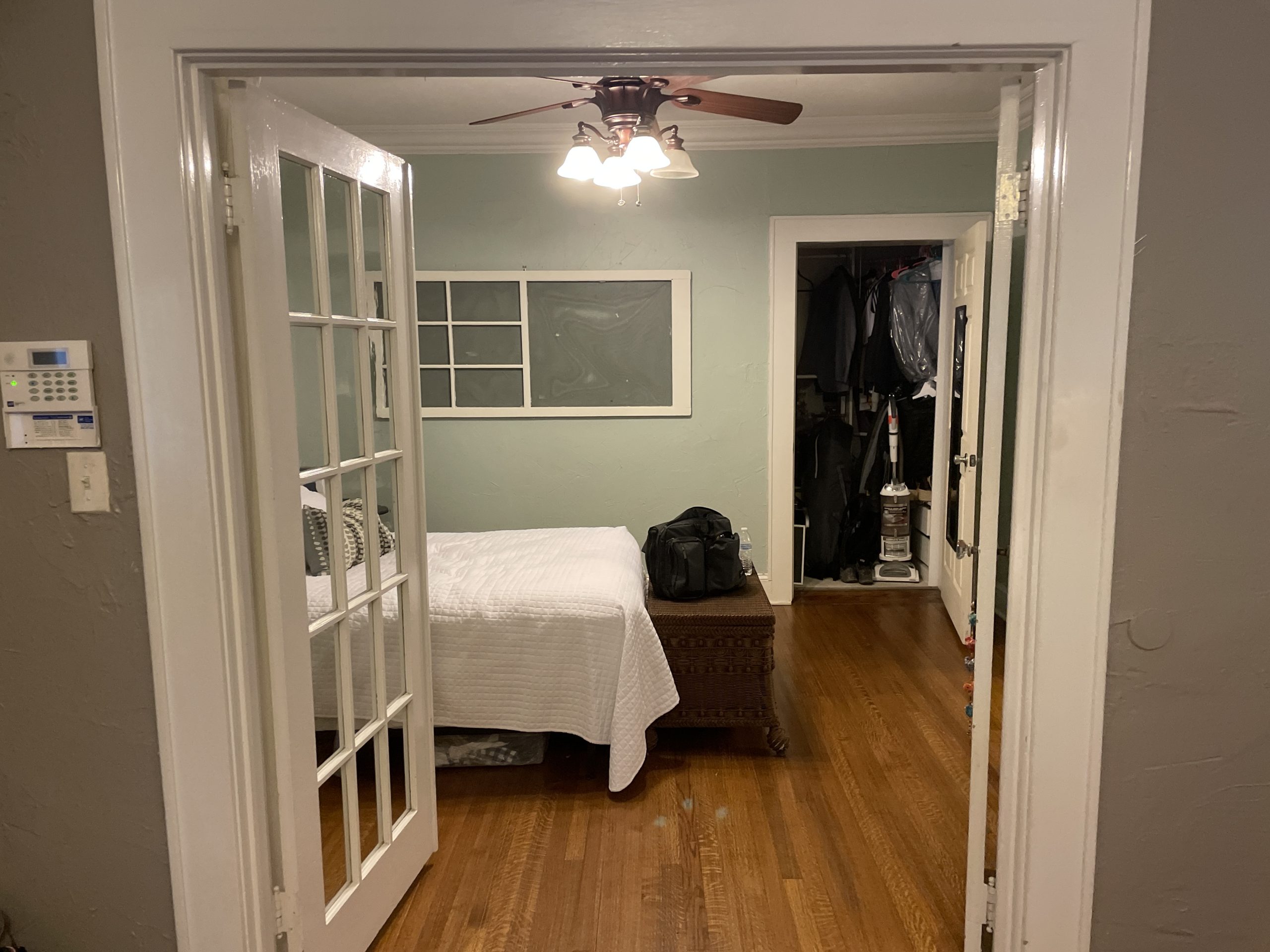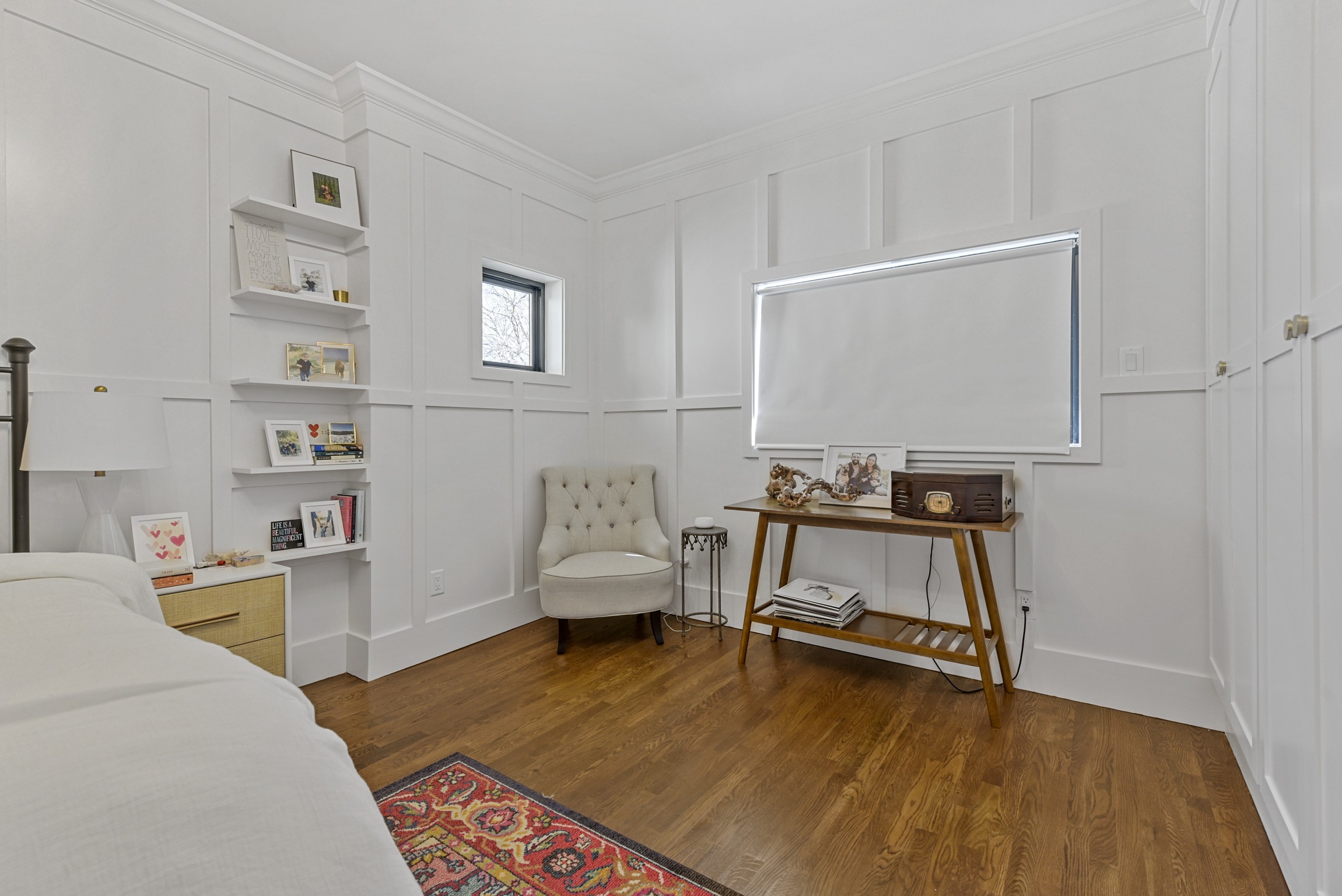 This may be a small space, but it got a big overhaul. For this project, our team expanded the bedroom by moving an exterior wall and adding a window. The board and batten molding on the walls gives the space a unique and clean look. This room also has a custom-built master closet and new hardwood floors to match the rest of the house.