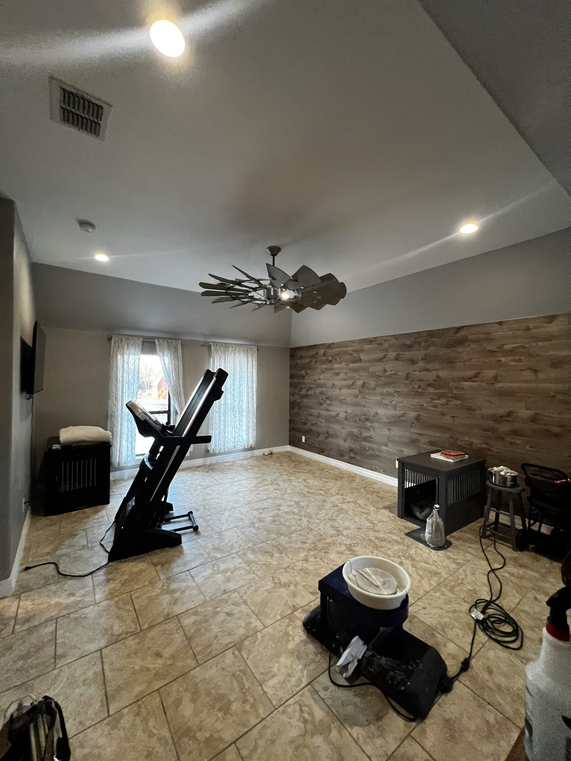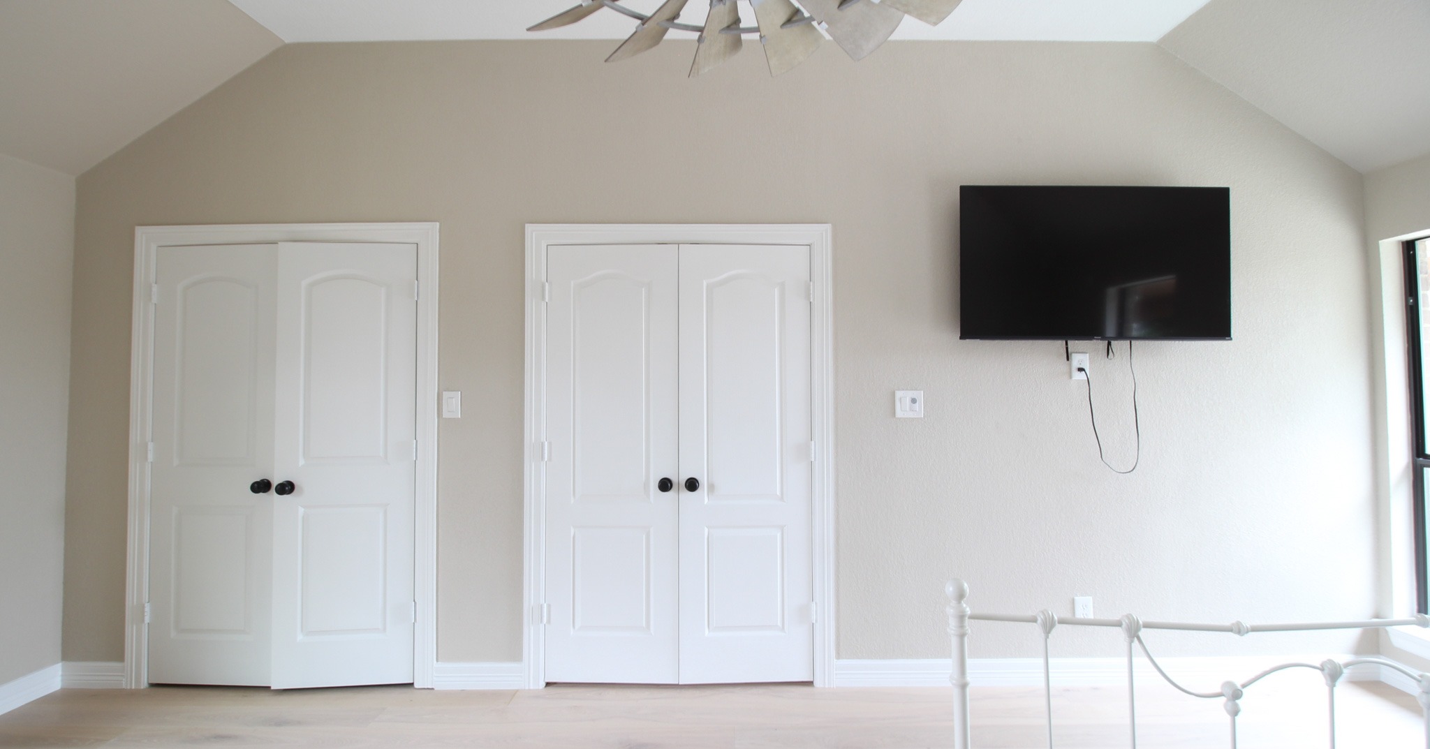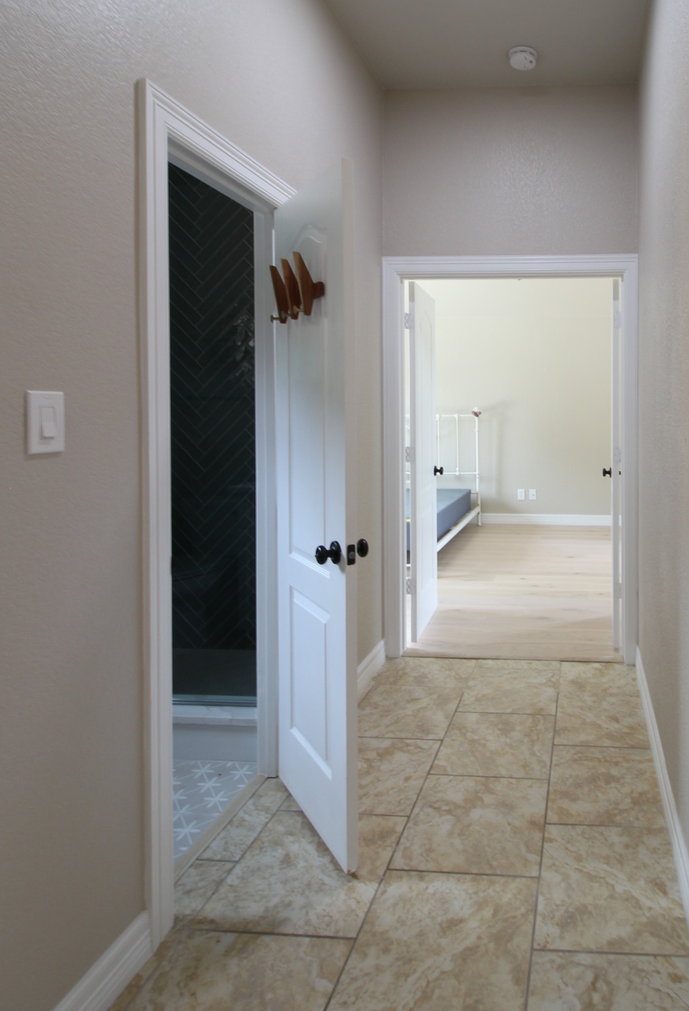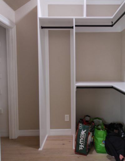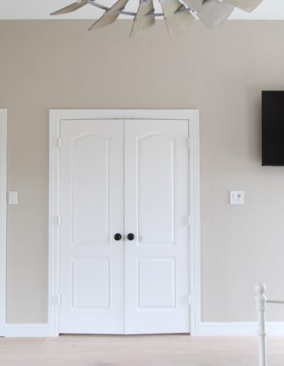 This client in Haslet had an open room and a powder bathroom that she wanted to turn into a master suite. We extended the bathroom to include a shower, walled off the open room, and turned the existing coat closet into a walk-in closet.