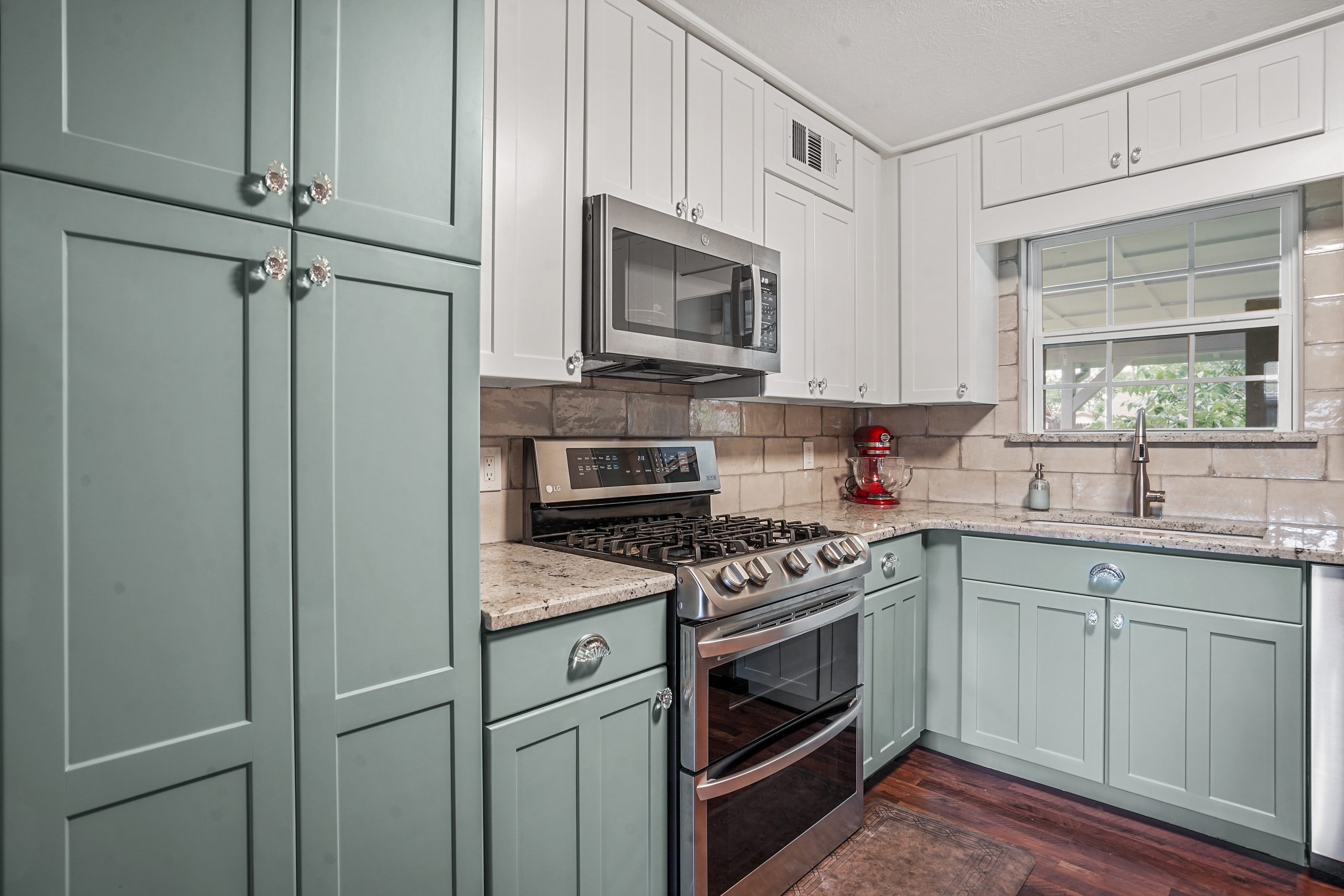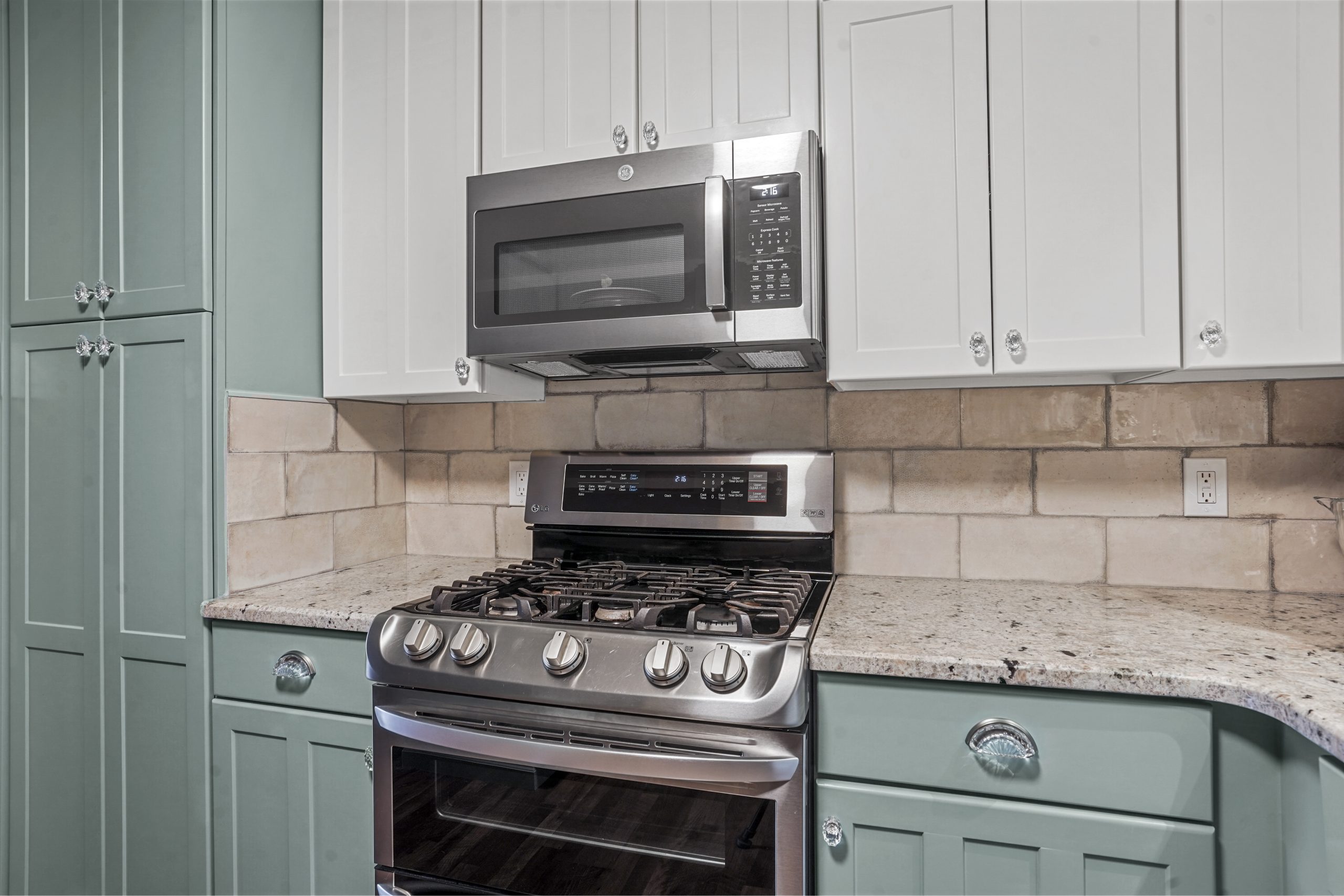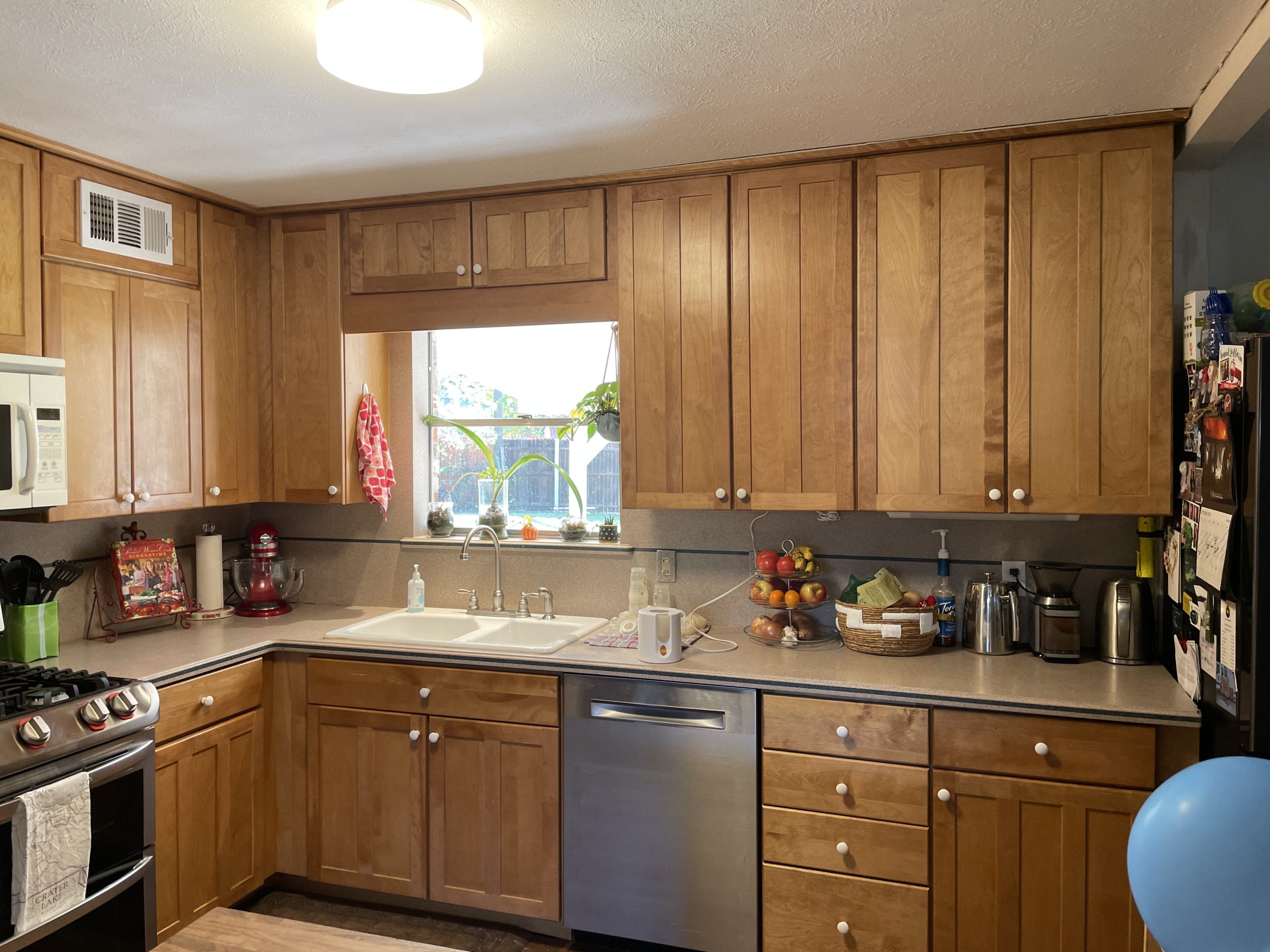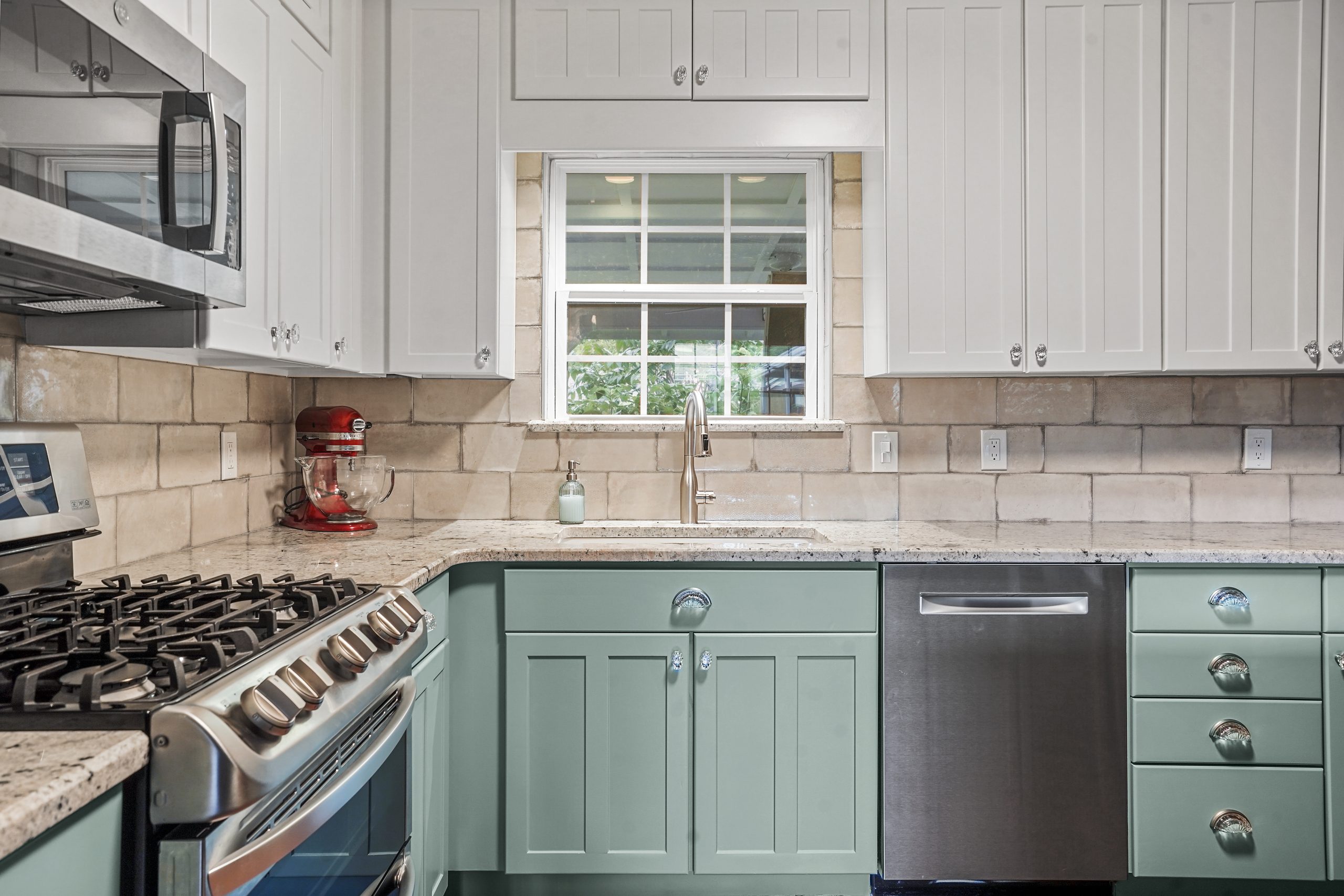 snode This kitchen in Saginaw was functional for our clients but a little outdated. By painting the existing cabinets and adding a new backsplash and countertops, we were able to give this space a facelift without breaking the bank. Before After